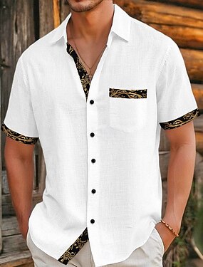 Herr Skjorta Linneskjorta Casual skjorta Bomullskjorta Färgblock Semester Gata Svart Vit Himmelsblå Grå Kortärmad Nedvikt Sommar Kläder Button-Down