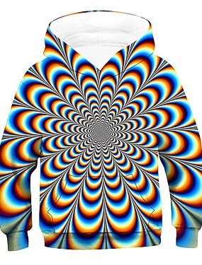 barn pojkar 3d vertigo luvtröja långärmad optisk illusion tryckficka grön röd gul barn toppar mode luvtröja