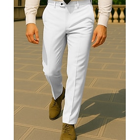 Herr Kostymbyxor Långbyxor Kinesiska Byxor Knappar Ficka Slät Komfort Formell Fest Arbete Mode Klassisk Stil Svart Vit Microelastisk