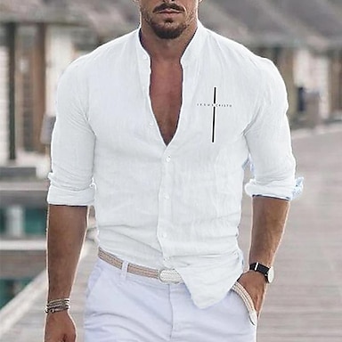 Herr Skjorta Linneskjorta Vit bomullsskjorta Casual skjorta Linneskjorta i bomull Bomullskjorta Kors Semester Hawaiisk Svart Vit Rodnande Rosa Grå Långärmad Kavajslag Vår & Höst Kläder Button-Down