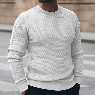 Herr Tröja Pullover tröja Stickad tröja Ribbad Kabel Sticka Vanliga toppar Stickat Slät Rund hals Modern Modernt Modernt Ledigt Dagliga kläder Kläder Höst Vinter Svart Vit S M L