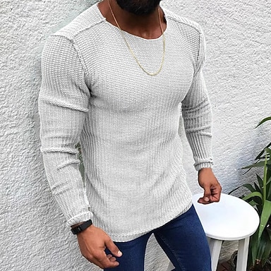 Herr Tröja Pullover tröja Ribbad Sticka Vanliga toppar Stickat Slimmad passform Slät Rund hals Stickat Nutida Ledigt Dagliga kläder Kläder Höst Svart Vit S M L