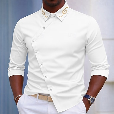 Herr Skjorta Icke-järnskjorta Franska manschettskjortor Skjorta med krage Knapp upp skjorta Kurva Bröllop Arbete Svart Vit Rodnande Rosa Blå Långärmad Nedvikt Alla årstider Kläder Button-Down