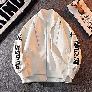 Herr Lättviktsjacka Cargojacka Vardaglig jacka Semester Dagligen Vindtät Vindtät jacka Ficka Höst Vinter Slät Mode Klassisk Hög krage Normal Svart Vit Purpur Grön Jacka