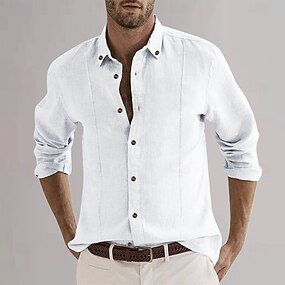 Herr Linneskjorta i bomull Enfärgad / vanlig färg Semester Dagliga kläder Svart Vit Himmelsblå Kaki Långärmad Kavajslag Kläder Button-Down