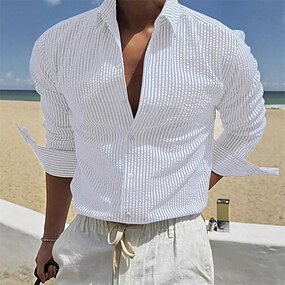 Herr Skjorta Sommarskjorta Casual skjorta Strandskjorta Knapp upp skjorta Svart Vit Ljusgrön Rubinrött Blå Långärmad Rand Kavajslag Semester Hawaiisk Kläder Polyester Mode Ledigt Bekväm