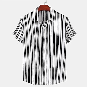 Herr Skjorta Linneskjorta Casual skjorta Knapp upp skjorta Bomullskjorta Rand Semester Gata Svart Vit Marinblå Kaki Kortärmad Nedvikt Sommar Kläder Button-Down