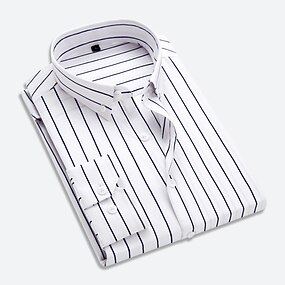 Herr Skjorta Randig tröja Button Down skjorta Skjorta med krage Randig Bröllop Arbete Svartvit Vit Rubinrött Marinblå Långärmad Kläder Lappverk