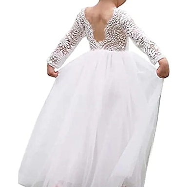 Barn Flickor Cosplay klänning Festklänning Ensfärgat Ärmlös Prestanda Bröllop Jul Nät Öppen rygg Lappverk Skön Ljuv Polyester Maxi Festklänning Swingklänning Tyllklänning Vinter 4-12 år Vit Champagne