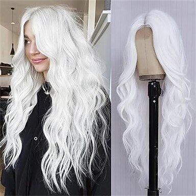 Peruker 28 Tum 70cm Lång Lockig Vågig Hår Peruk Värmeresistent Halloween Cosplay Fest Peruker Ren Vit