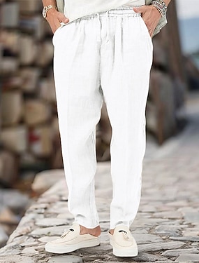 Herr Joggare Linne Byxor Långbyxor Sommarbyxor Snörning Veck Slät Komfort Utomhus Semester Dagligen Helgdag Mode Vit