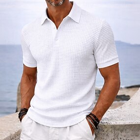 Herr Våffelpikétröjor Strukturerad Ledigt Helgdag Kavajslag Ribbstickad polokrage Kortärmad Mode Grundläggande Slät Knappar Mjukt Sommar Vår Normal Vit Gul Kaki Grå Våffelpikétröjor