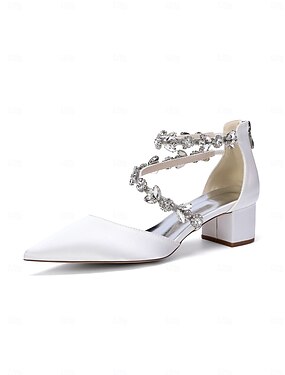Elfenbensvita pumps med blockklack och strassrem för dam, eleganta brudens morskor för utomhusbröllop i trädgården
