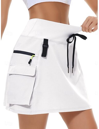 Dam Solid färg Avslappnad kjol Tenniskjolar med shorts Sportkjol Ficka Hög midja Elastisk Svettavvisande Andningsfunktion Tennis Golf Pickleball Kjolar Svart Vit Röd Tenniskläder