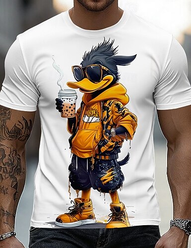 herr cool svart anka med solglasögon dricker boba-te streetwear urban hiphop grafisk t-shirt kortärmad rund hals rolig boba-älskare födelsedagspresent designerkläder kläder