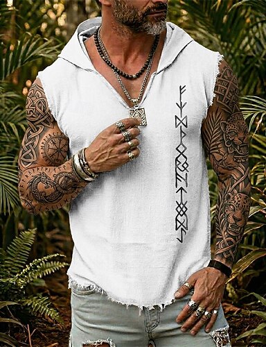 herr vikinga runor fornnordisk futhark hednisk krigare bohemisk tribal ärmlös huvväst grafik fransig rå fåll lös passform sommar strandfestival designerkläder s m l xl xxl xxxl