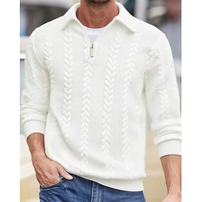 Herr Ribbstickad topp Strukturerad Företag Ledigt Ribbstickad polokrage Långärmad Mode Grundläggande Ensfärgat Stickat Höst Vinter Smal passform Vit Marinblå Grön Grå Ribbstickad topp