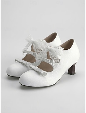Damskor med elfenbensfärgad Mary Jane-klack och rosett i spets – vintage brudskor för trädgårdsbrudar