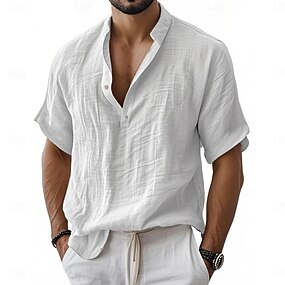 Herr Skjorta Linneskjorta Popover skjorta Sommarskjorta Standkläder Ensfärgat Semester Gata Blå Svart Vit Marinblå Kortärmad Tröjkrage Sommar Vår Kläder