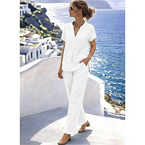 Dam Byxuppsättningar Bolero Konstbomullslinne Kortärmad V-hals Ensfärgat Mode Streetwear Ledigt Dagligen Utomhus Blå Vit Mörk Marin Sommar Normal