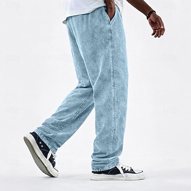 Herr Casual byxor 100% Bomuld Säckiga byxor Syratvättade byxor Snörning Elastisk midja Rakt ben Slät Komfort Bekväm Fullängd Dagligen Utomhus Semester Semester Mode Blå Svart Oelastisk