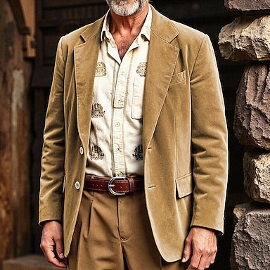 Herr Kavaj Sammetsblazers Företag Cocktailfest Bröllopsfest Mode Ledigt Vår & Höst 100 % bomull Färgblock Ficka Knappar Bekväm Enkelknäppt Blazer Rubinrött Kungsblå Grön