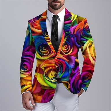 Herr Färgblock Geometrisk Kavajjacka Kappa Bekväm Andningsfunktion Artistisk Ledigt Ledigt Dagligen Festkvällskläder 3D-utskrift Knappar Flera fickor Alla årstider Trubbig Långärmad Rubinrött Purpur