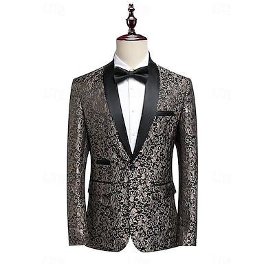 Herr Kavajjacka Smoking Sjal party Lyx Jacquard Blazer Blå Khaki grön Standardpassform Singelknäppt 1 Knapp