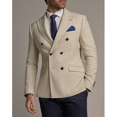 Beige herr blazer vardagsbruk affär preppy mode jacka enfärgad dubbelknäppning regelbunden passform polyester