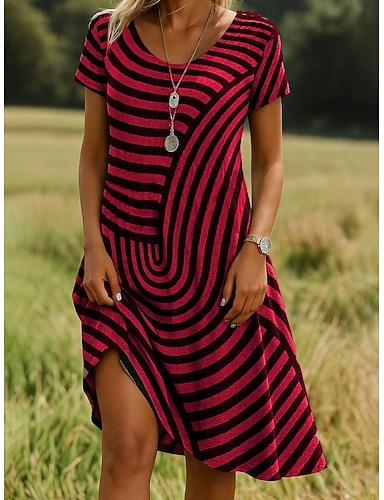 Dam Mini klänning Vardagsklänning T shirtklänning Solklänning A linjeklänning Ledigt Normal Grafisk Geometrisk Kortärmad V-hals Rubinrött Blå Purpur Brun Sommar Vår