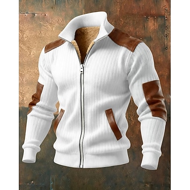 Herr Vinterkappa Fleece-jacka Vardaglig jacka Utomhus Ledigt Håller värmen Lappverk Ficka Höst Vinter Rutig Streetwear Dagligen Hög hals Normal Kamel Svart Vit Marinblå Brun Jacka