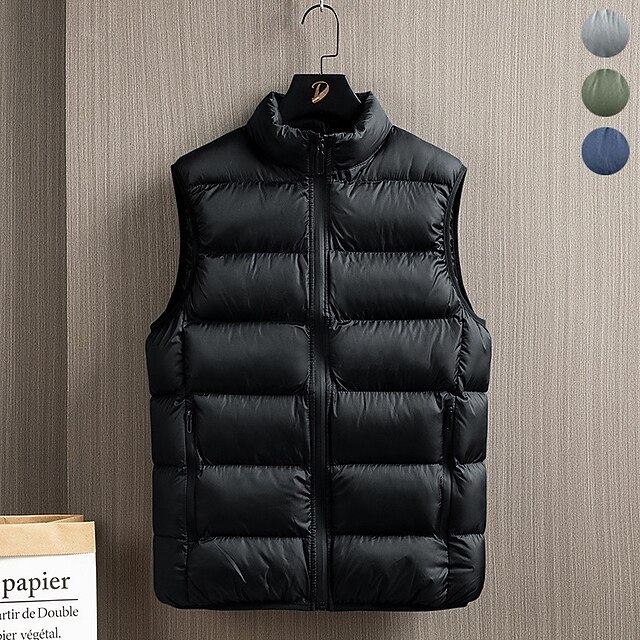 Herr Vandringsväst Pufferväst Vinter Höst Utomhus Håller värmen Vest Jakt Fiske Klättring Svart Blå Grön Grå #10072835