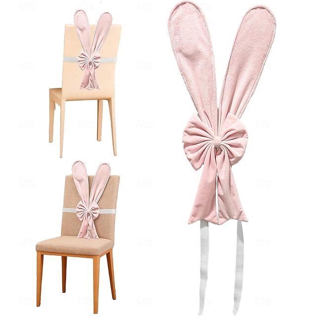 Påsk stolsöverdrag med kaninöron, söta rosa påskhare med rosett och ryggstöd, avtagbara stretchöverdrag för kaninstolar, perfekt för påskmatbord, restaurangfestdekor#10252588