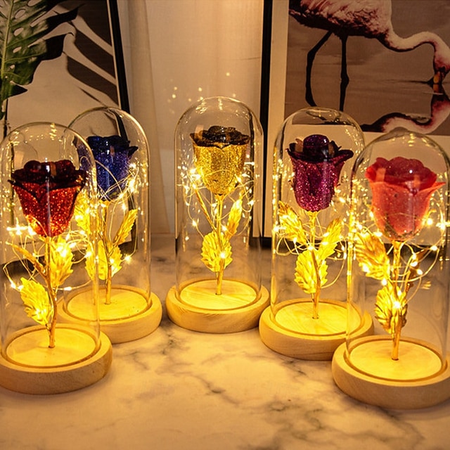 Moderskapsdag Simulerad Ros LED Dekorativ Nattlampa 21.5 * 11.5CM Gåva till Flickvän Hustru och Mor Glas Lock AAA Batteribox Inomhus Sovrums Ornament Ljus Atmosfärsljus#10551960