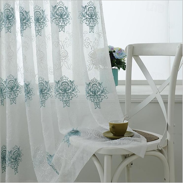 en panel i medelhavsstil high-end broderad fönsterskärm vardagsrum sovrum matsal halvgenomskinlig skärmgardin#10652650