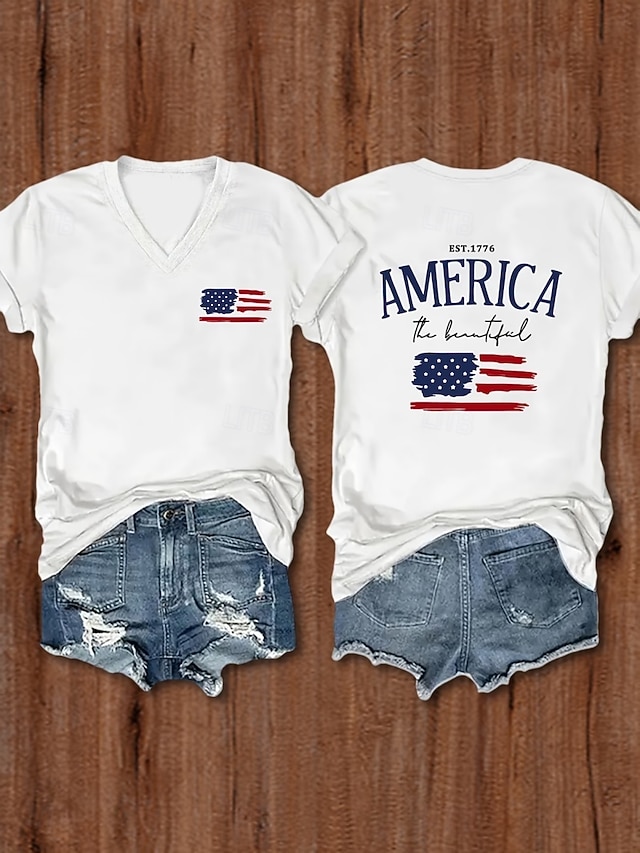 Amerikanska självständighetsdagen Dam T-shirt T-tröja Mönster Grafisk Flagga Stylish Klassisk Ledigt Kortärmad V-hals Vanliga toppar Dagligen Utekväll Helgen Vit Sommar Vår#12327738
