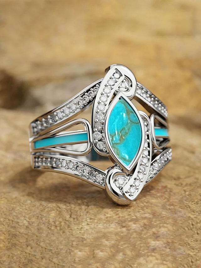 Bohemisk turkos ring för kvinnor – legering, flera storlekar, perfekt för vardagskläder och strandsemesterstil#12790765