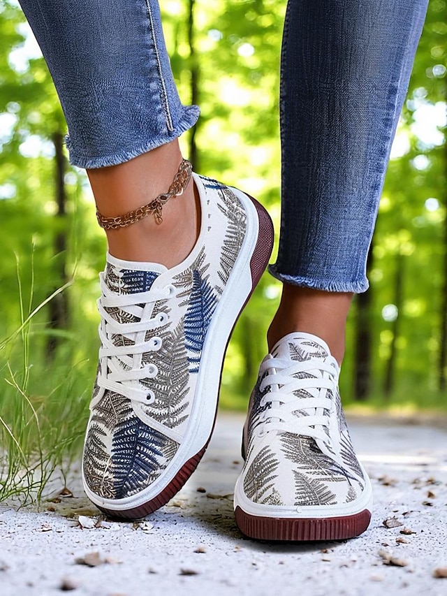 Färgglada damsneakers med lövtryck – avslappnade snörskor för naturälskande kvinnor, perfekta för promenader utomhus och vardagsbruk #13397806