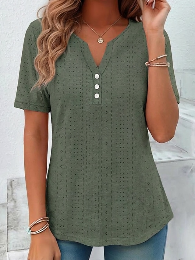 Material:Elastan,Polyester,Topptyp:Summer Tops,Blus,T-shirt,Kön:Dam,Tillfälle:Helgen,Utekväll,Dagligen,Stil:Klassisk,Stylish,Kategori:T-shirt,Passform:Normal,Halslinje:V-hals,Ärmlängd:Kortärmad,Elasticitet:Microelastisk,Ta hand om mig:Tvättbar,Maskintvätt,Längd överdel:Vanliga toppar,Årstid:Vår,Sommar,