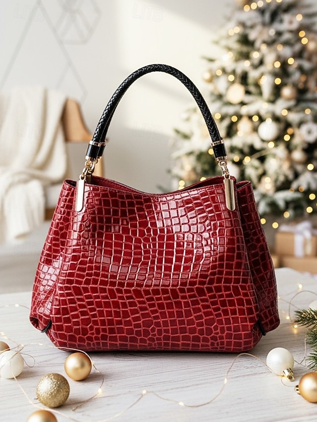 Damhandväska i konstläder med krokodilprägling, julklar, finns i rött, blått och svart – snygg vinteraxelväska med justerbar rem och gulddetaljer #14032522