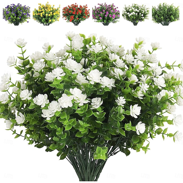 20 knippen konstgjorda blommor för utomhusdekoration falska sidenblommor uv-beständiga konstgjorda växter konstgjorda tusensköna eukalyptus för våren sommar trädgård trädgård veranda fönster