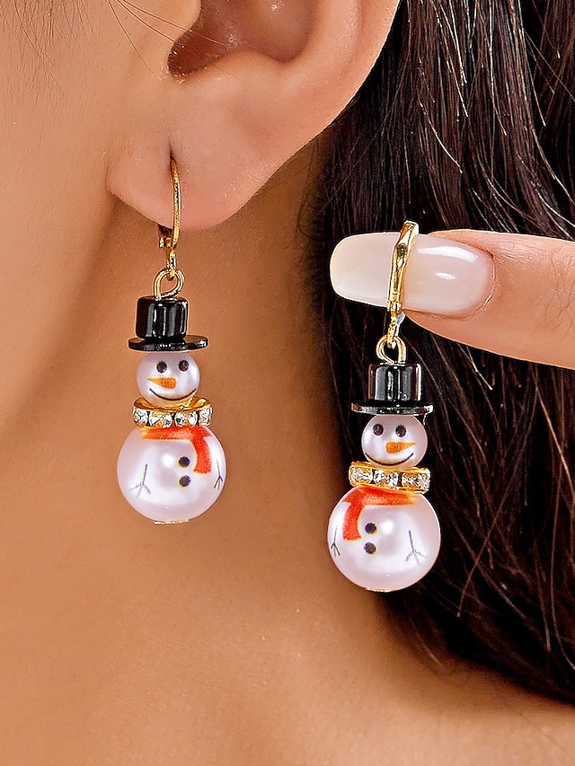 Julörhängen i legering för kvinnor med snögubbe- och snöflingedesign, perfekta för högtidsmode och festliga presenter #14890944