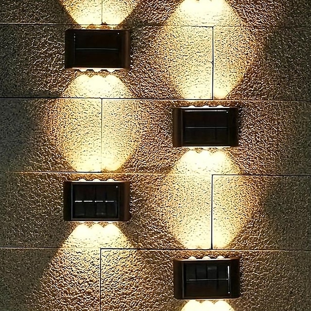 4 st led utomhus solcellslampor stegljus 6 pärlor uteplatslampor innergård trädgård staket däck vägglampor enkel installation#15862866