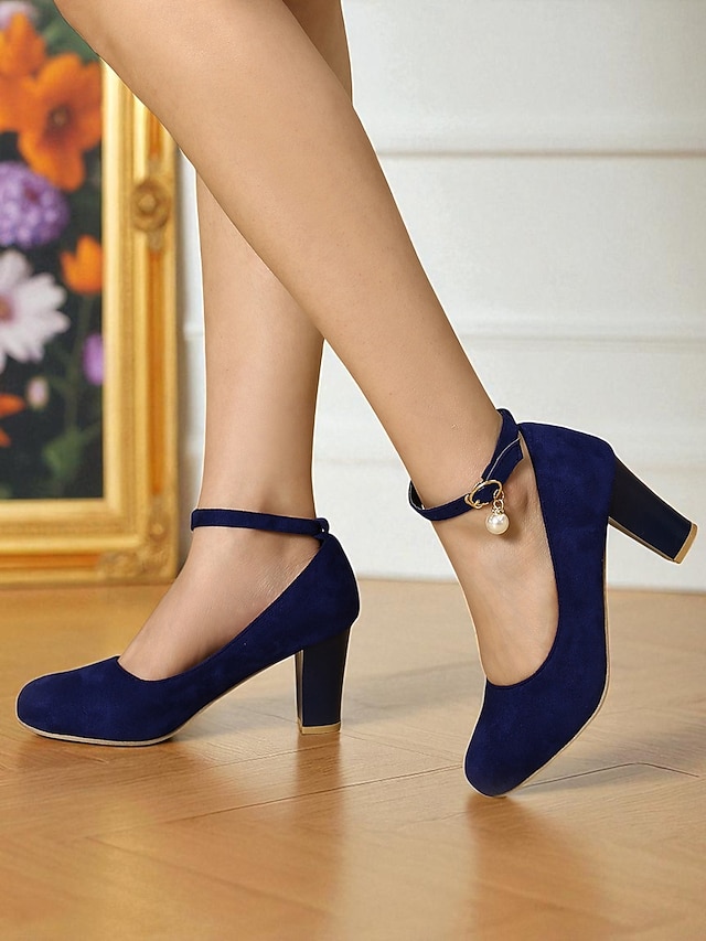 Gula dampumps i mocka med blockklack, ankelrem och pärlberlock - eleganta vintage-retro klänningsskor från 1950-talet för bröllop och cocktailpartyn &aftonkläder #16253280