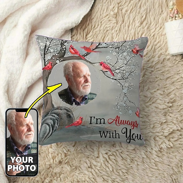 Anpassad Minneskuddöverdrag Fotokuddöverdrag Kasta kudde Sympatigåva Personliga minnesgåvor Jag är alltid med dig#16397637