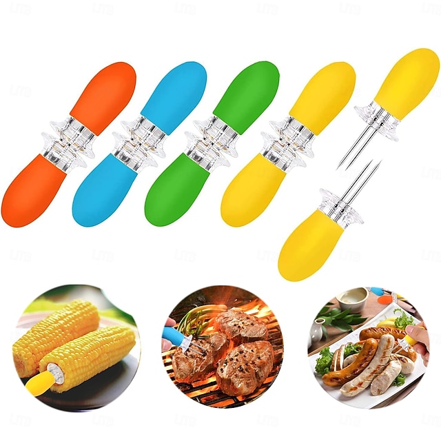 10 st majskolvshållare i rostfritt stål med spettgafflar och sammankopplade designer för hemmamatlagning, camping och grillfester (flerfärgade)#16439585