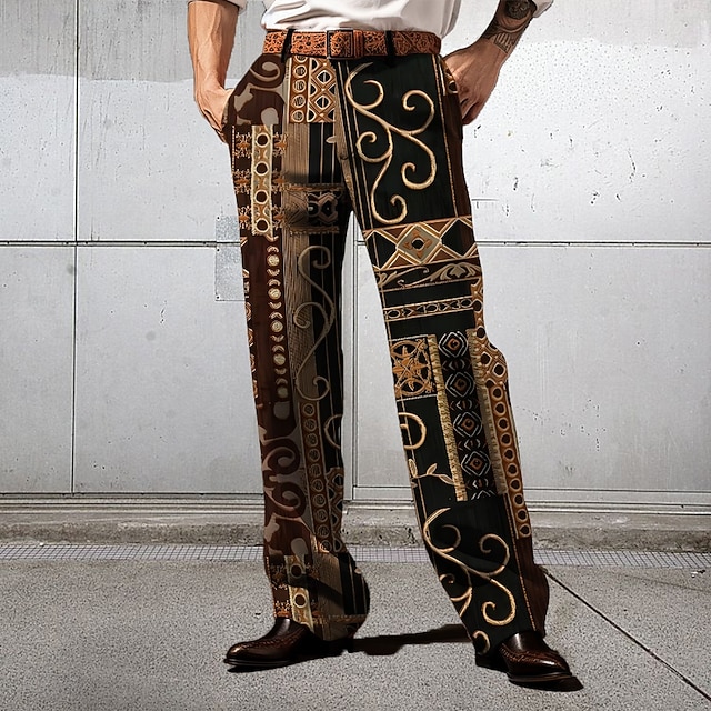 Herr Blommig Etnisk Kostymbyxor Medium Midja Business Casual Formell Bröllop Vardag Dragkedja Ficka Byxor med raka ben Sommar Vår Höst 3D-tryck Gul Blå Purpur #18090695