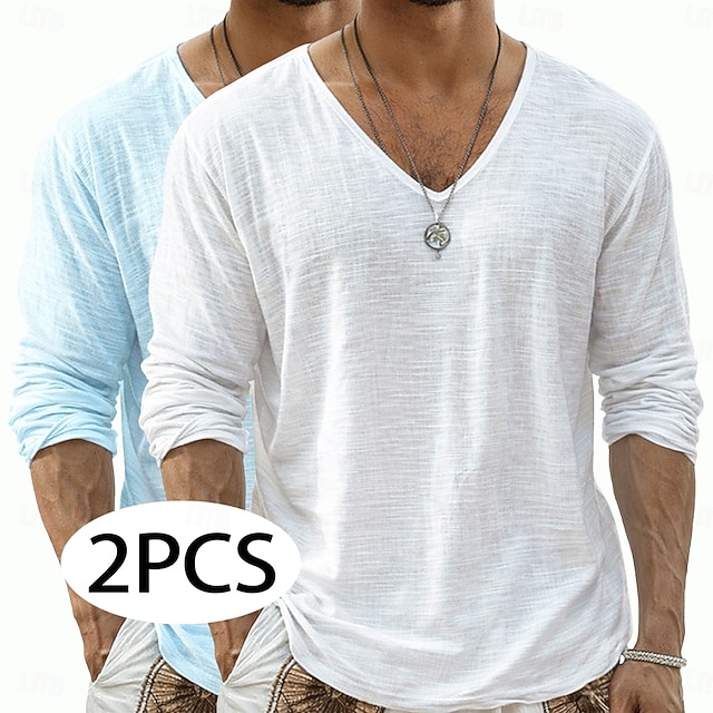 Topptyp:T-tröja,Linne T-shirt,Material:Bomull,Linne,Polyester,Kön:Herr,Tillfälle:Casual,Gata,Ledigt,Utomhus,Design:2 st,Slät,Flerpack,Stil:Ledigt,Dagligen,Gatustil,Passform:Normal,Halslinje:V-hals,Ärmlängd:Långärmad,Tjocklek:Tunn,Elasticitet:Elastisk,Ta hand om mig:Maskintvätt,Mönster:Ensfärgat,Slät,Årstid:Sommar,Vår & sommar,Vår,Inkluderar:Skjorta,T-shirt,Topp,Funktion:Andningsfunktion,Kvantitet:2st,