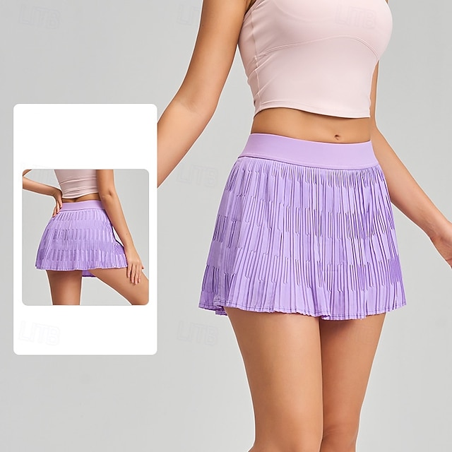 Dam Solid färg Avslappnad kjol Träningskjol Elastisk Svettavvisande Andningsfunktion Tennis Pickleball Yoga Underdelar Svart Vit Gul Tenniskläder#19290066