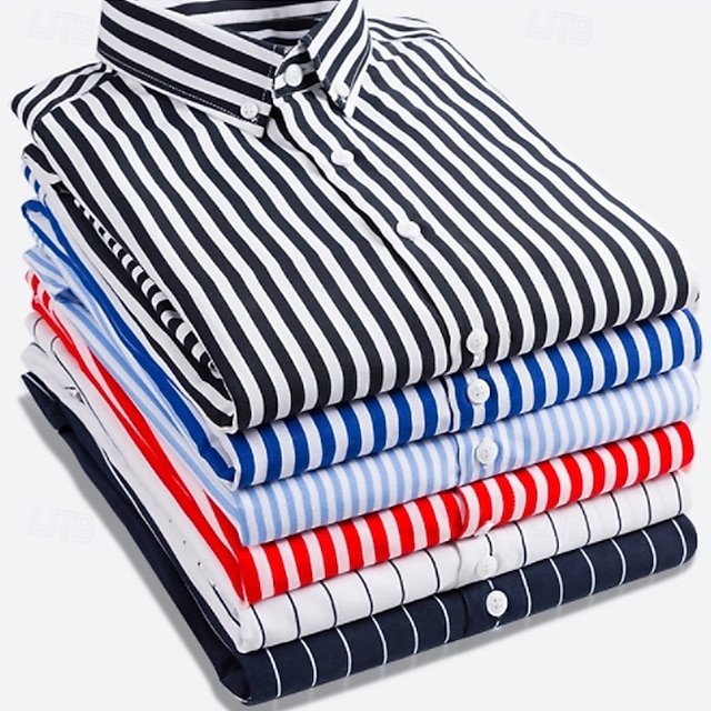 Herr Skjorta Randig tröja Button Down skjorta Skjorta med krage Randig Bröllop Tillbaka till kontoret Svart Vit Rubinrött Marinblå Långärmad Kläder#7489851